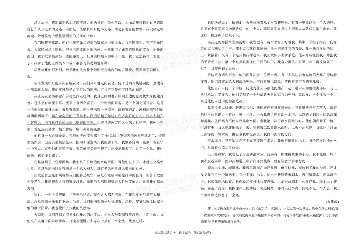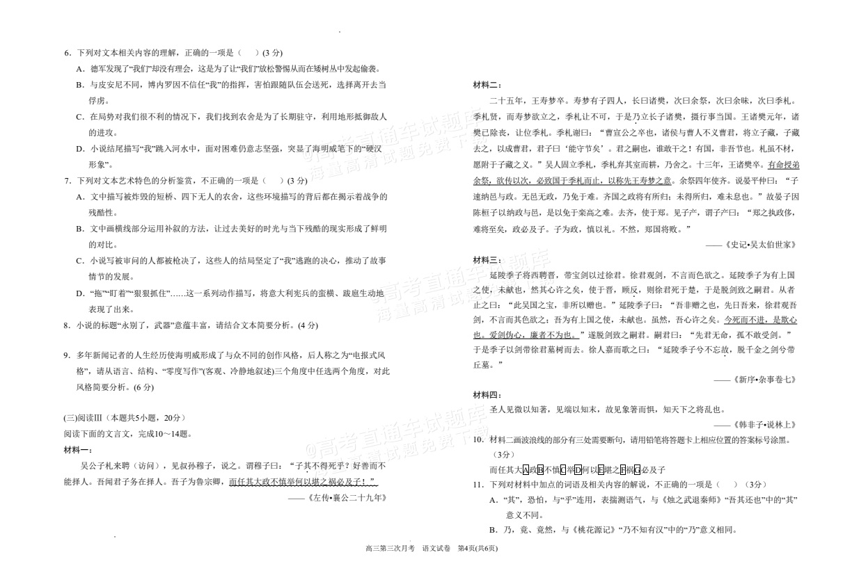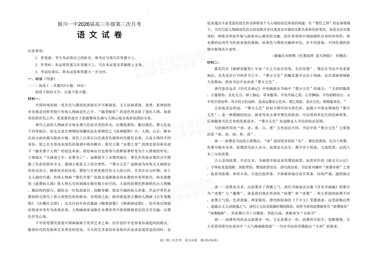 2026宁夏银川一中高三上第三次月考语文试题及参考答案