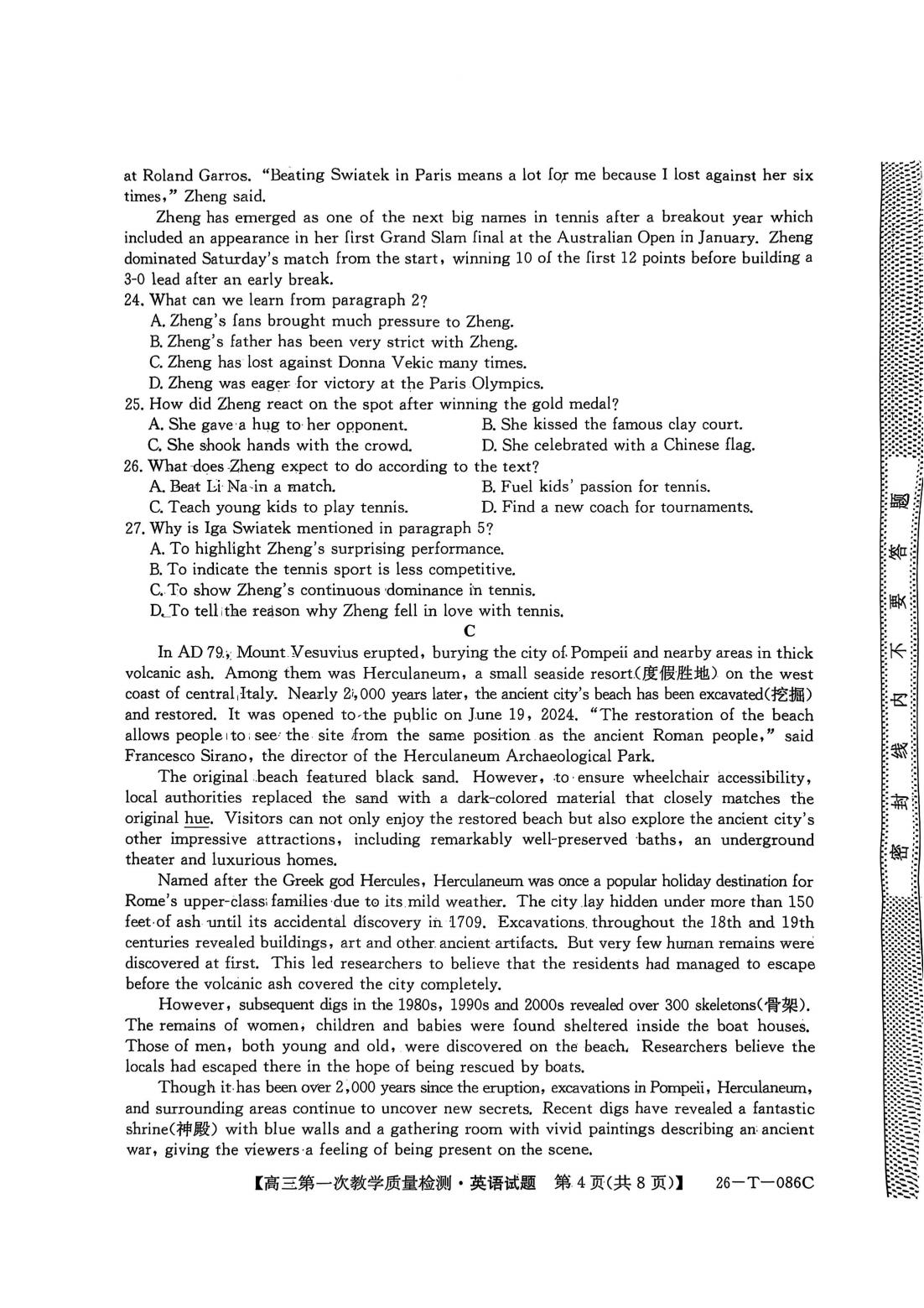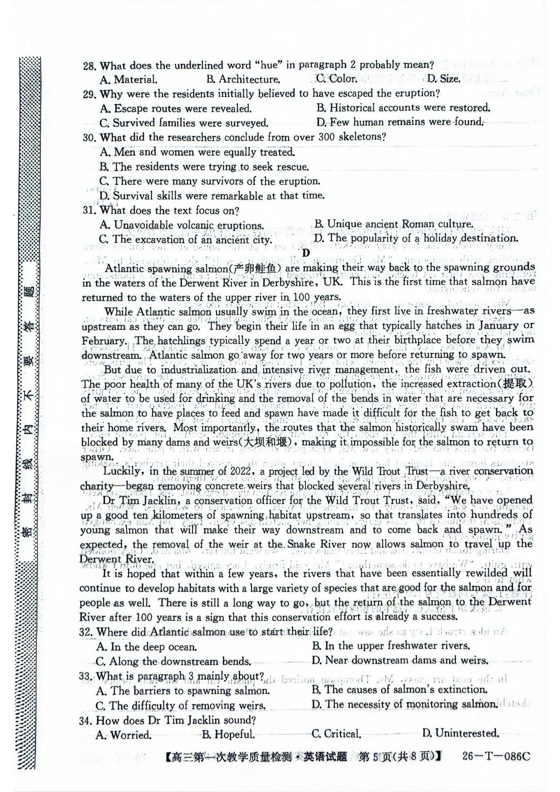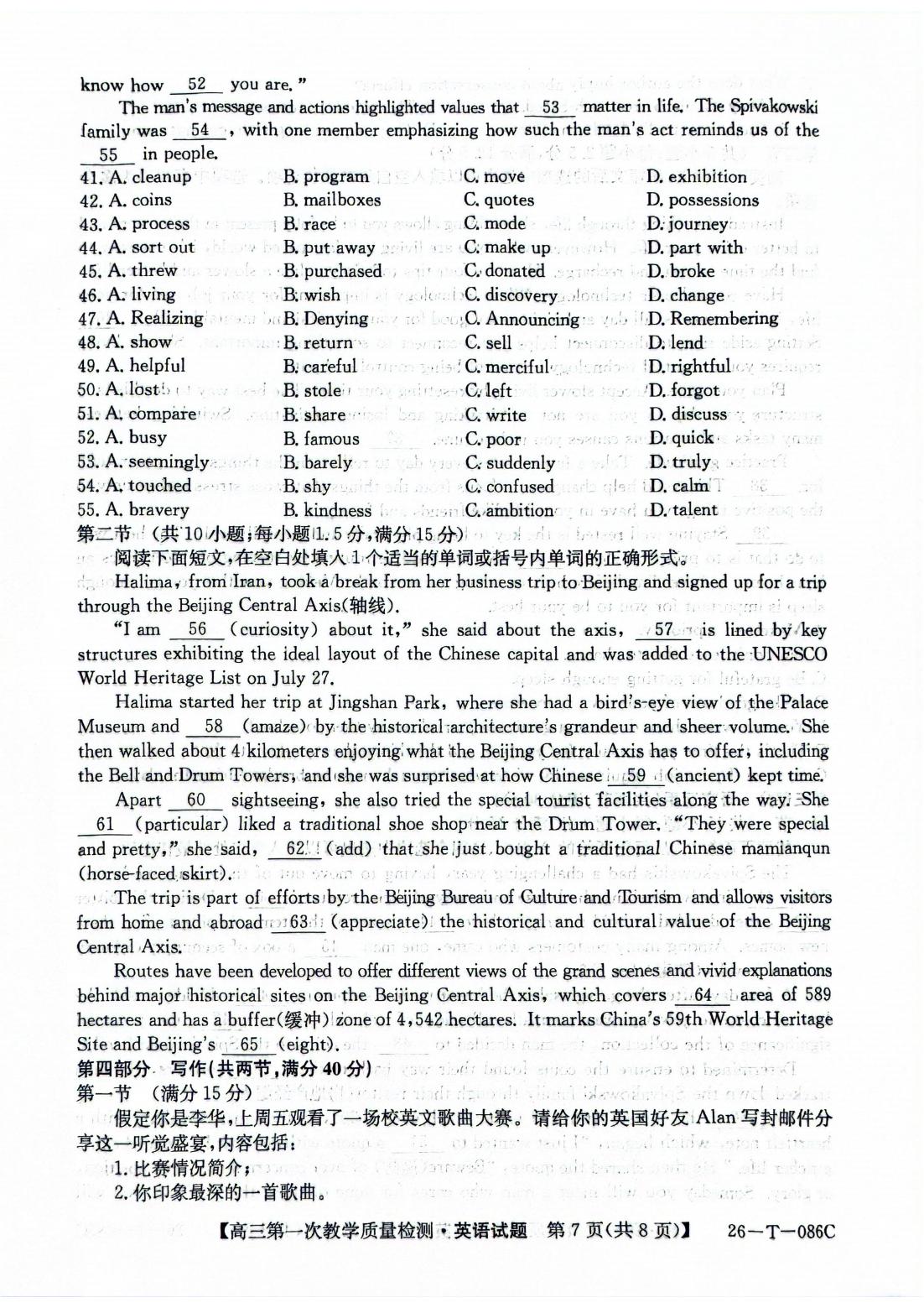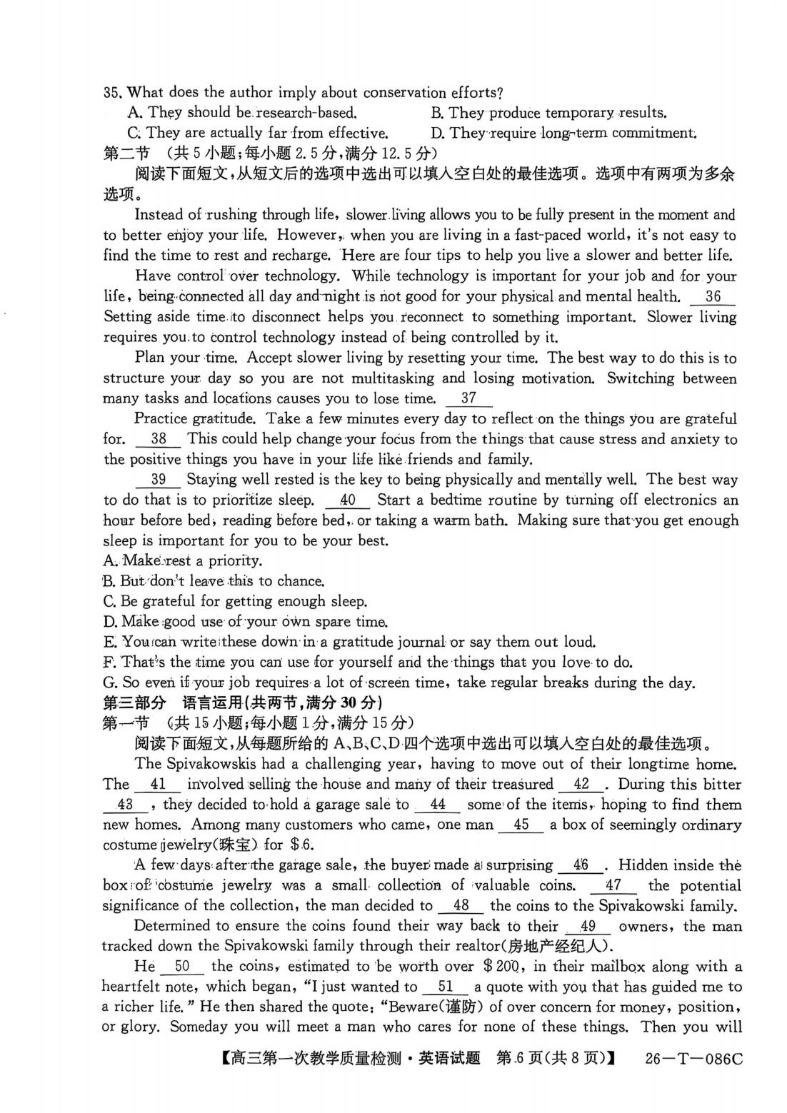 2026安徽阜阳市太和中学高三上第一次教学质量检测英语试题及参考答案