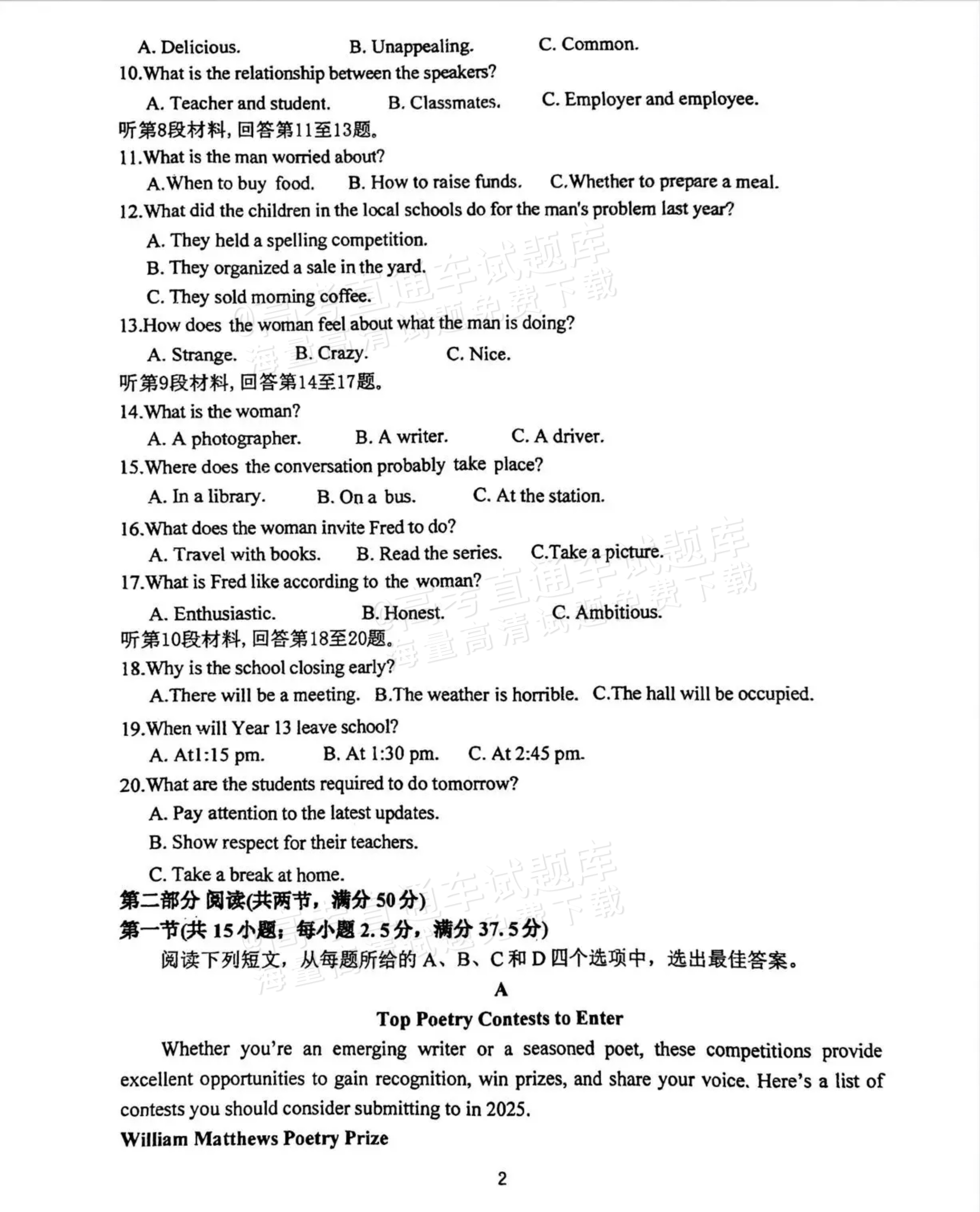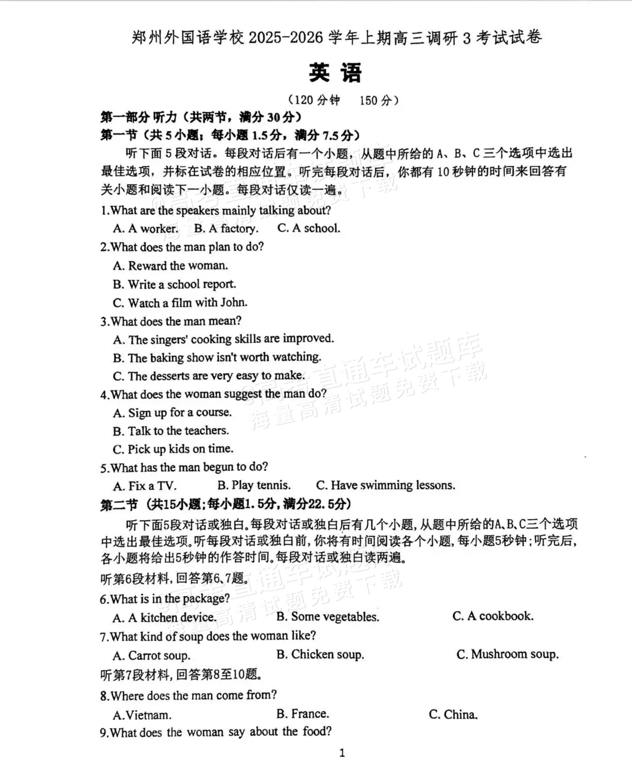 2026河南郑州外国语学校高三10月调研英语试题及参考答案更新中,查看更多2026河南郑州外国语学校高三10月调研模拟预测试卷及答案可点击:2026河南郑州外国语学校高三10月调研各科试题及参考答案汇总,新都网高考信息平台分享的2026河南郑州外国语学校高三10月调研模拟预测试卷及答案是具有极高参考价值的高考模拟信息卷&押题卷答案,可供考生考前模拟预测或押题参考。