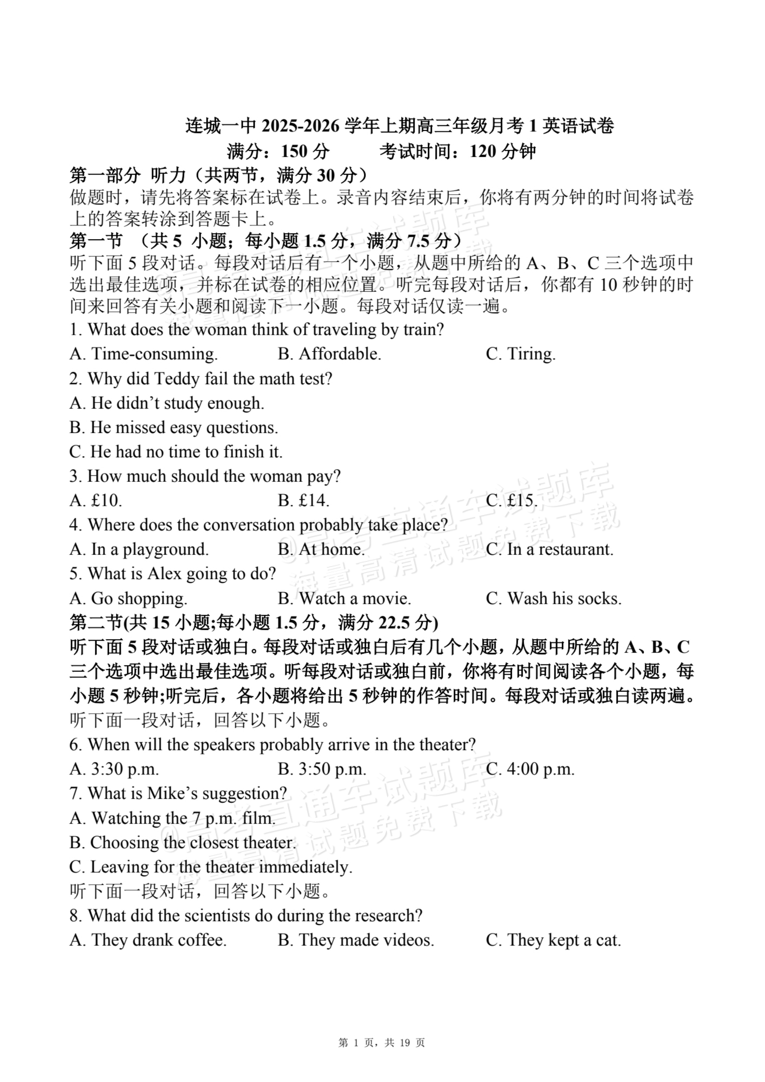 2026福建龙岩连城县第一中学高三10月月考英语试题及参考答案更新中,查看更多2026福建龙岩连城县第一中学高三10月月考模拟预测试卷及答案可点击:2026福建龙岩连城县第一中学高三10月月考各科试题及参考答案汇总,新都网高考信息平台分享的2026福建龙岩连城县第一中学高三10月月考模拟预测试卷及答案是具有极高参考价值的高考模拟信息卷&押题卷答案,可供考生考前模拟预测或押题参考。