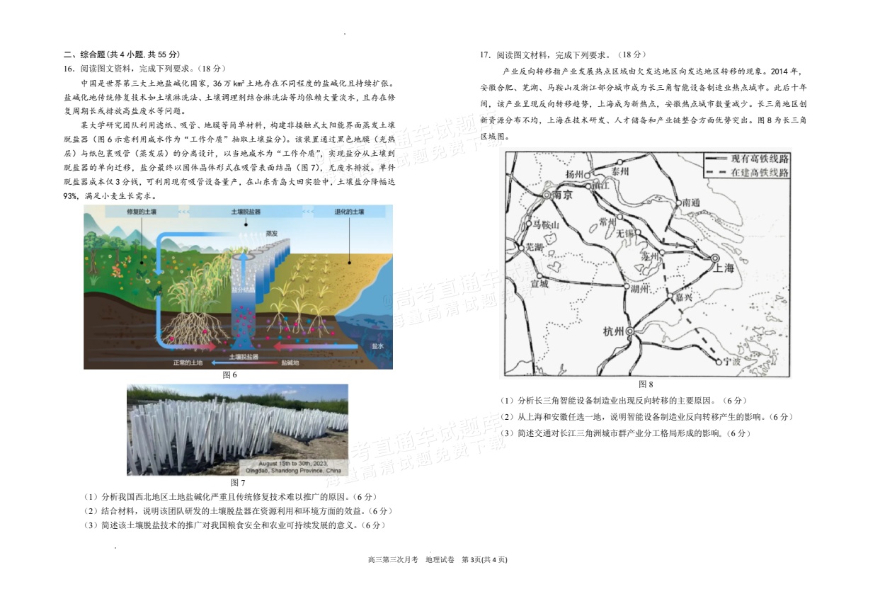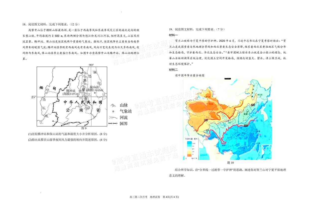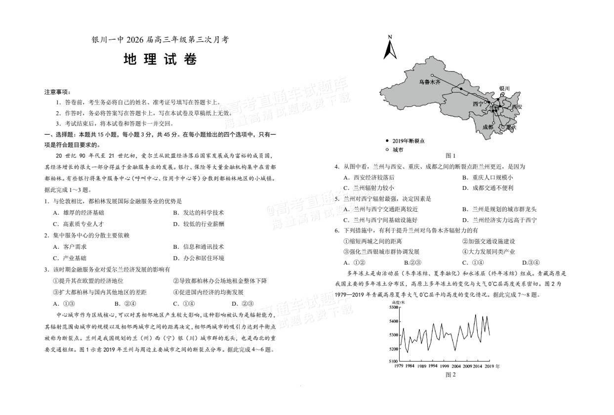 2026宁夏银川一中高三上第三次月考地理试题及参考答案