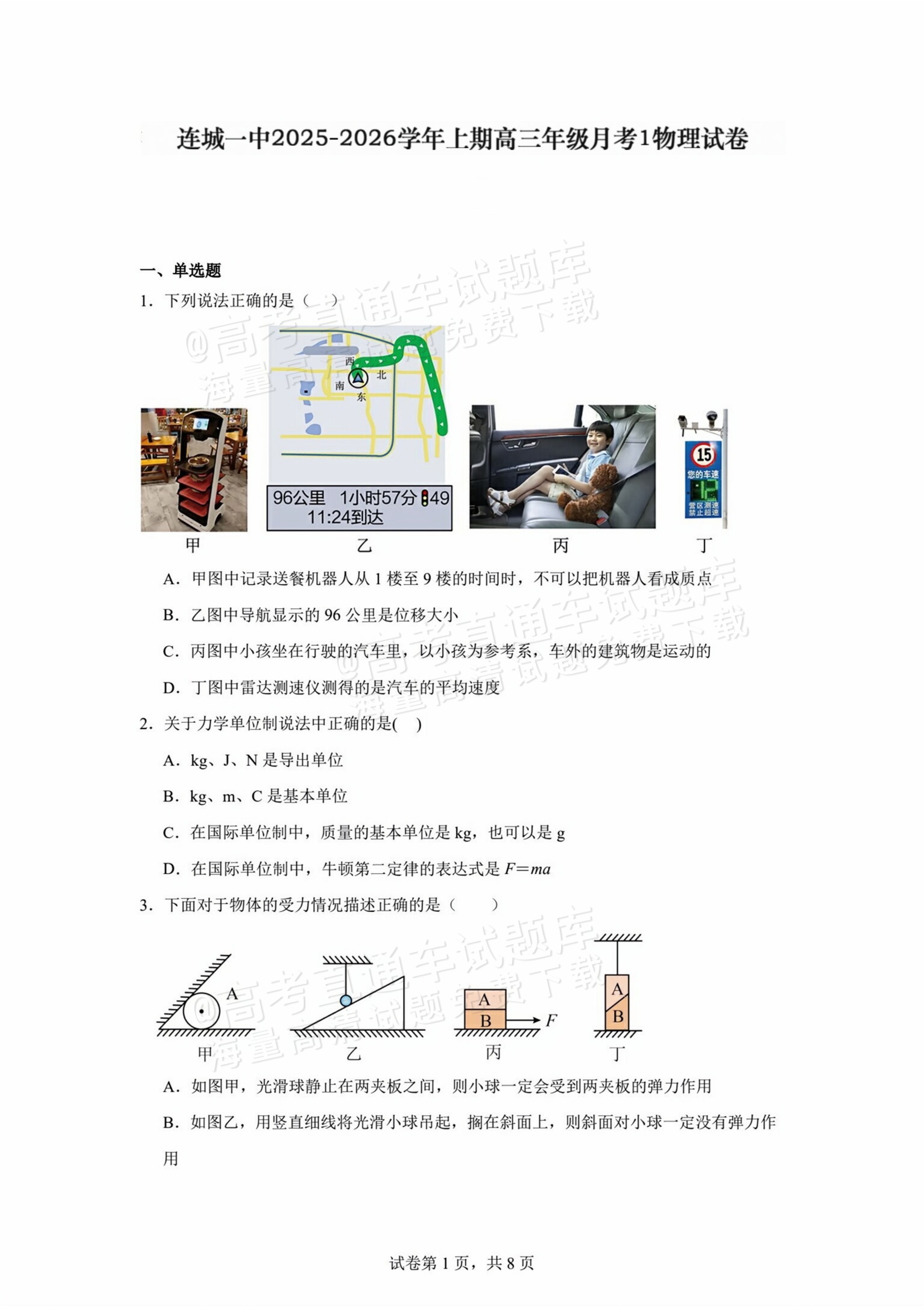 2026福建龙岩连城县第一中学高三10月月考物理试题及参考答案更新中,查看更多2026福建龙岩连城县第一中学高三10月月考模拟预测试卷及答案可点击:2026福建龙岩连城县第一中学高三10月月考各科试题及参考答案汇总,新都网高考信息平台分享的2026福建龙岩连城县第一中学高三10月月考模拟预测试卷及答案是具有极高参考价值的高考模拟信息卷&押题卷答案,可供考生考前模拟预测或押题参考。