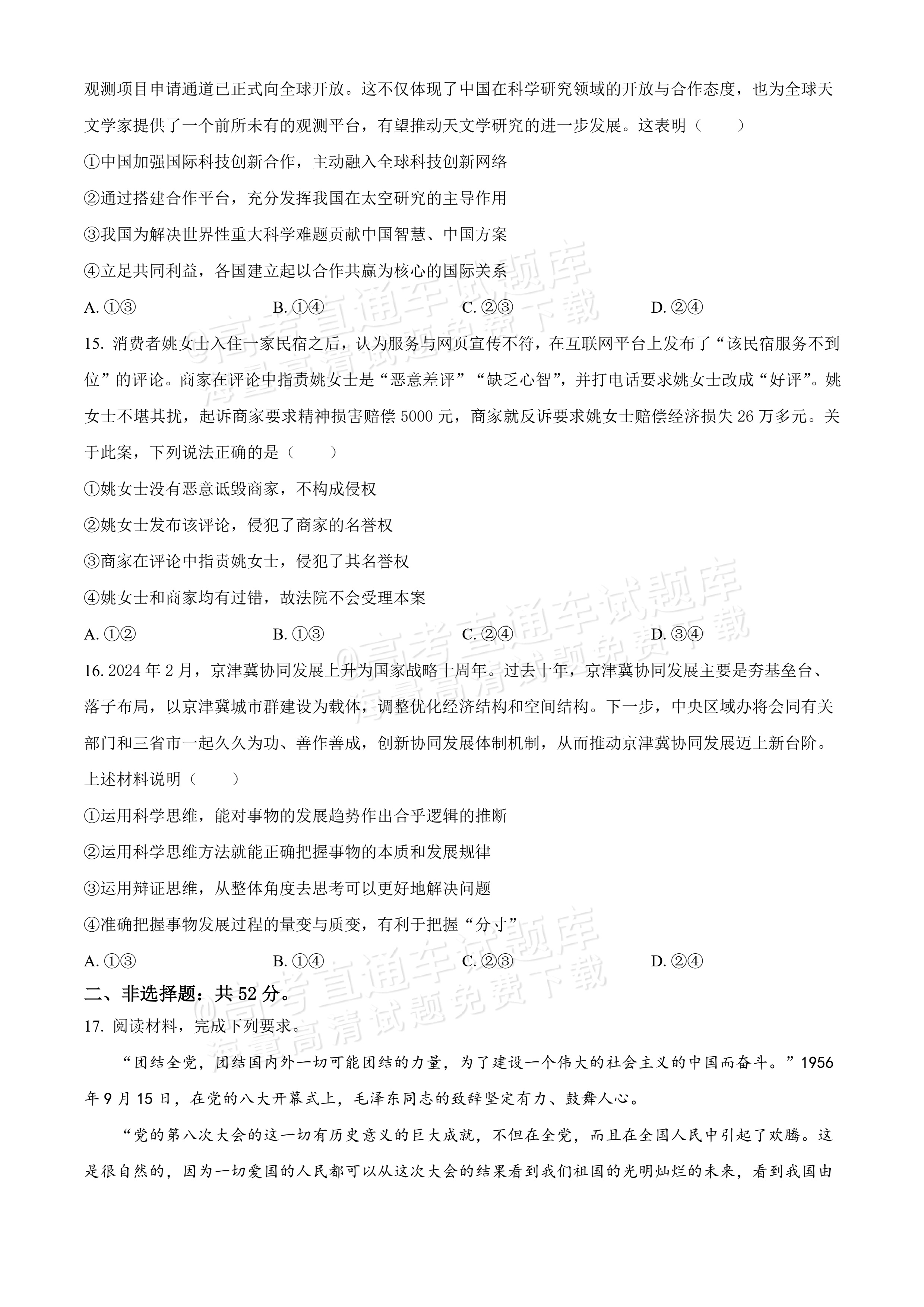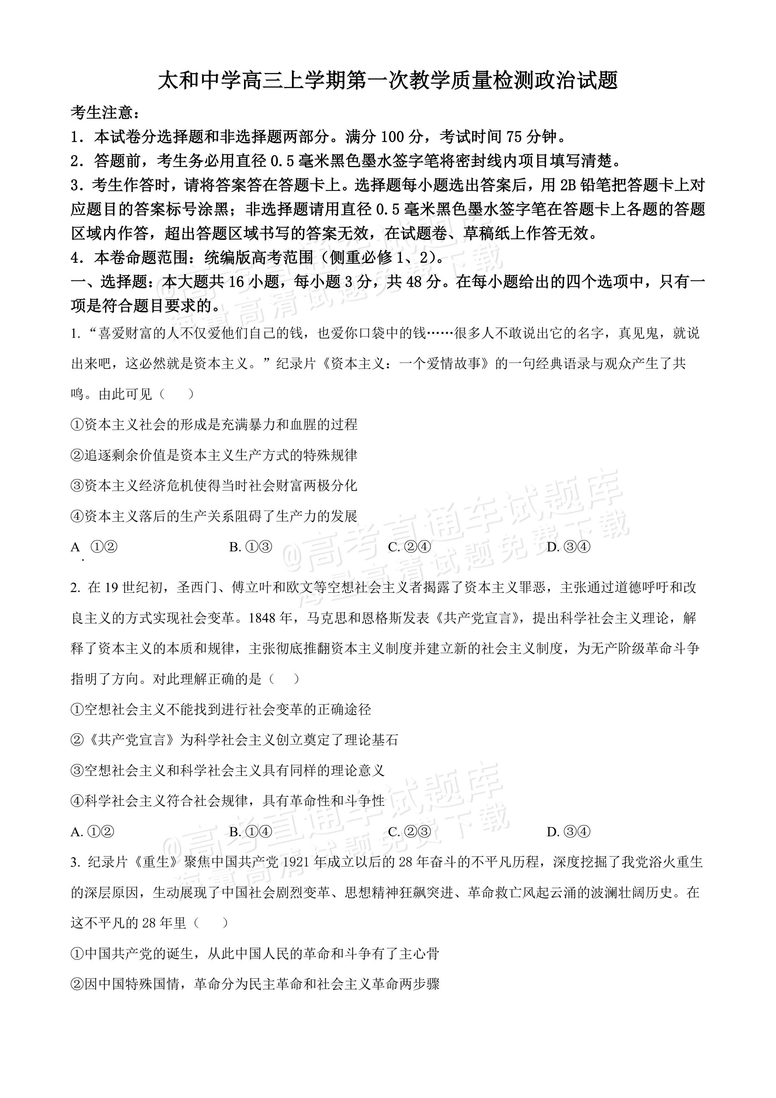 2026安徽阜阳市太和中学高三上第一次教学质量检测政治试题及参考答案更新中,查看更多2026安徽阜阳市太和中学高三上第一次教学质量检测模拟预测试卷及答案可点击:2026安徽阜阳市太和中学高三上第一次教学质量检测各科试题及参考答案汇总,新都网高考信息平台分享的2026安徽阜阳市太和中学高三上第一次教学质量检测模拟预测试卷及答案是具有极高参考价值的高考模拟信息卷&押题卷答案,可供考生考前模拟预测或押题参考。