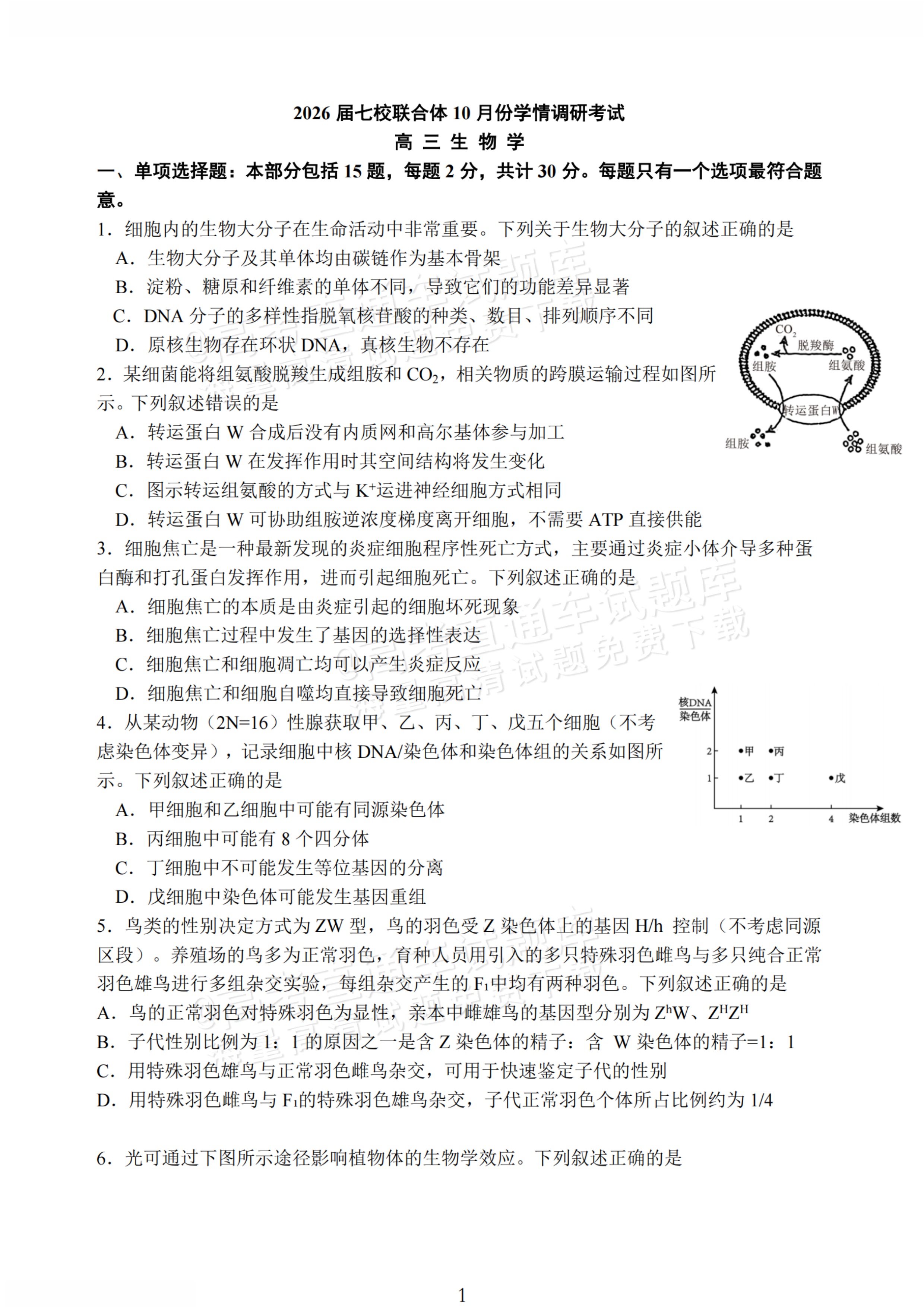 2026江苏南京10月七校联合学情调研考生物试题及参考答案更新中,查看更多2026江苏南京10月七校联合学情调研考模拟预测试卷及答案可点击:2026江苏南京10月七校联合学情调研考各科试题及参考答案汇总,新都网高考信息平台分享的2026江苏南京10月七校联合学情调研考模拟预测试卷及答案是具有极高参考价值的高考模拟信息卷&押题卷答案,可供考生考前模拟预测或押题参考。